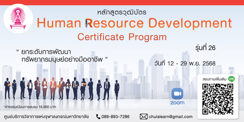 จุฬาลงกรณ์มหาวิทยาลัย จึงเปิดอบรมหลักสูตรวุฒิบัตร การพัฒนาทรัพยากรบุคคล (Human Resource Development Certificate Program) เพื่อให้ความรู้ ความเข้าใจ และแนวทางในการพัฒนาทรัพยากรบุคคลแก่ผู้บริหาร หัวหน้าและพนักงานฝ่ายทรัพยากรบุคคล รวมทั้งบุคคลทั่วไปที่สนใจ พร้อมทั้งเปิดโอกาสให้มีการแลกเปลี่ยนความคิดเห็นและประสบการณ์กับนักบริหารและพัฒนาทรัพยากรบุคคลมืออาชีพ เพื่อสามารถนำไปใช้ให้เกิดประโยชน์กับองค์กรอย่างแท้จริง